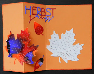Diesmal habe ich das Werk schräg auf den Kartenrohling (Kraft) geklebt.